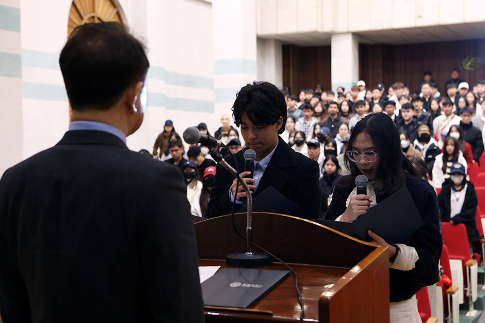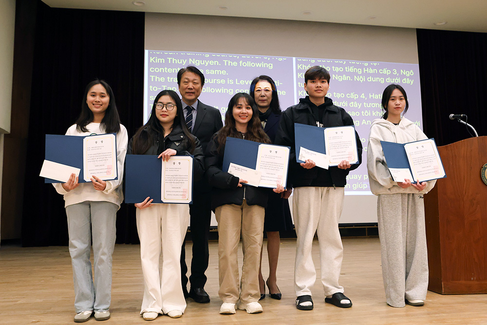 이날 입학식은 신입생 선서와 환영사, 우수학습자 시상, 축하공연, 기념 촬영 등의 순으로 진행되었으며, 외국인 신입생들은 앞으로 각 전공 및 한국어 교육 과정을 통해 글로벌 리더로서의 역량을 쌓아가게 된다.