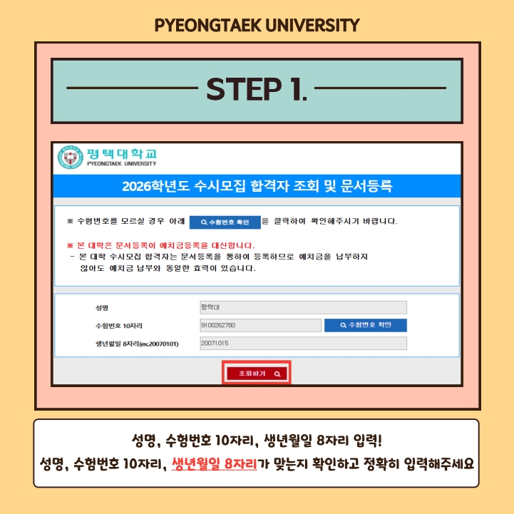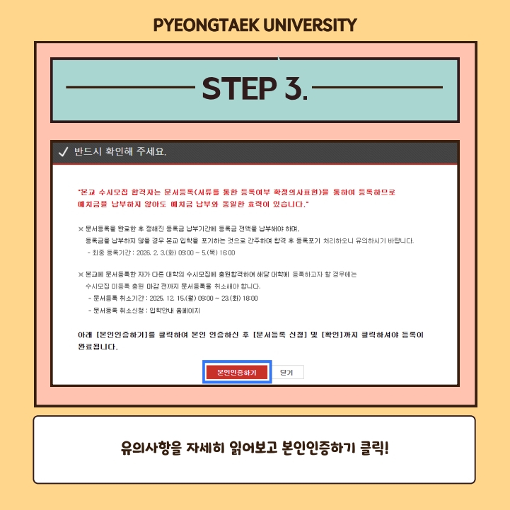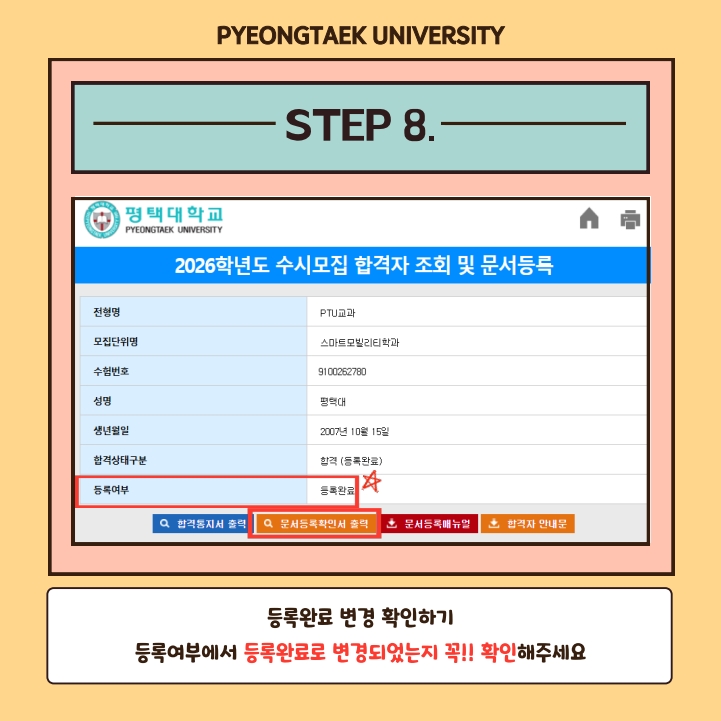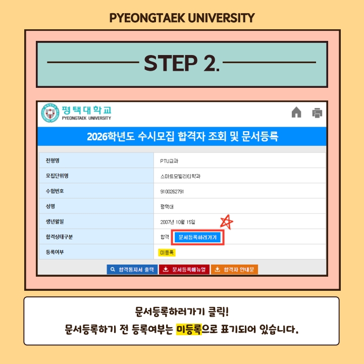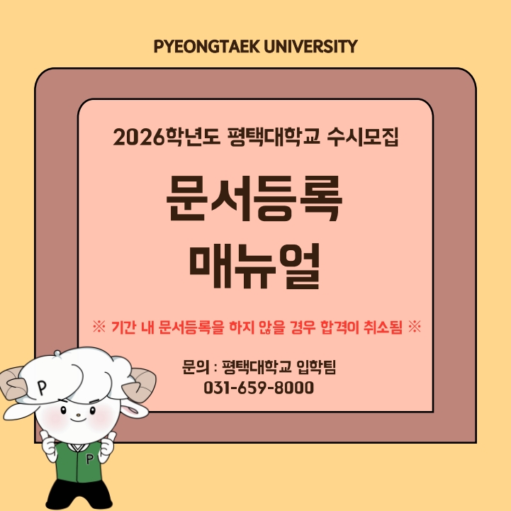 첨부파일 '2026학년도 평택대학교 수시모집 문서등록 매뉴얼'을 확인하시어,