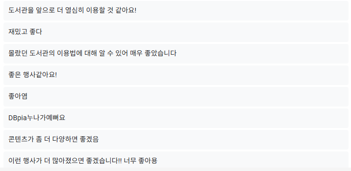 도서관 이용을 활성화하고 독서 활동을 지원하기 위한 특별 프로그램도 눈길을 끌었다. '지식의 권좌' 행사에서는 도서관 최고 이용자 7팀(최고 이용자 + 베프 2~3명)과 대출 권수가 많은 최고 학과 1팀(사회복지학과)을 중앙도서관 앞 텐트로 초대해 과자, 피자, 음료 등을 제공하는 특별한 시간을 가졌다. 특히 사회복지학과 학과장(신승연 교수)은 최고의 학과로 선정된 것을 자축하며 학과생들에게 피자 4판을 후원하여 훈훈함을 더했다.