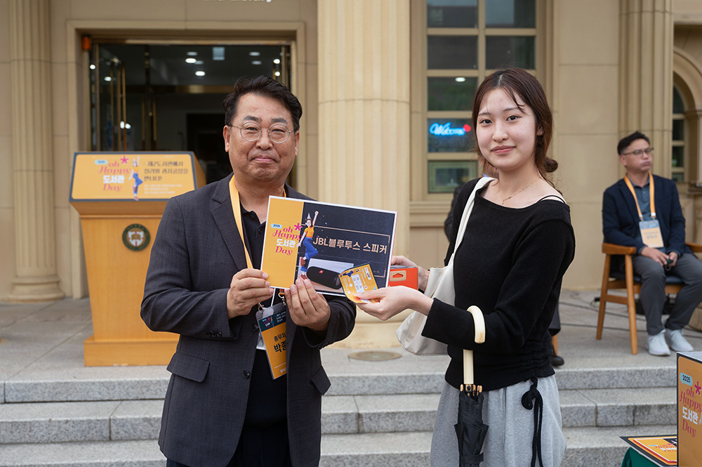이날 경품 추첨 및 시상식에는 이동현 총장, 장희선 기획경영본부장, 박종민 총무처장, 오은영 대외협력실장이 시상자로 참석하여 자리를 빛냈다.